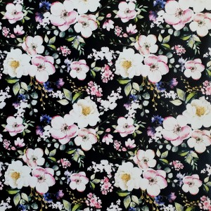 Umetno usnje s cvetličnim potiskom, ki se uporablja za izdelavo torbic, nahrbtnikov, pasov, dekorativnih blazin in drugih modnih dodatkov.
